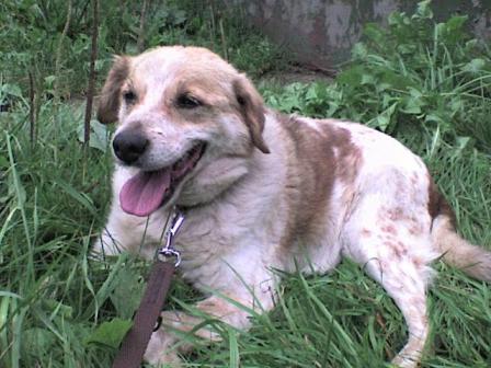 Młodzikiem to ja nie jestem. Mam gdzieś tak 13 lat a 5 ostatnich spędziłem w olsztyńskim Schronie. Jestem mieszańcem średniej wielkości, sierść mam jasną, upstrzoną żółtawymi łatkami i stąd pewnie moje szlachetne imię. Towarzystwo innych psów specjalnie mnie nie nęci, ale toleruję te stworzenia ( dopóki nie wchodzą mi w drogę ). Z racji słusznego już wieku miewam kłopoty z poruszaniem się – nieco szwankują mi tylne kulasy, więc czasem zachowuję się tak, jakbym był „po spożyciu”.