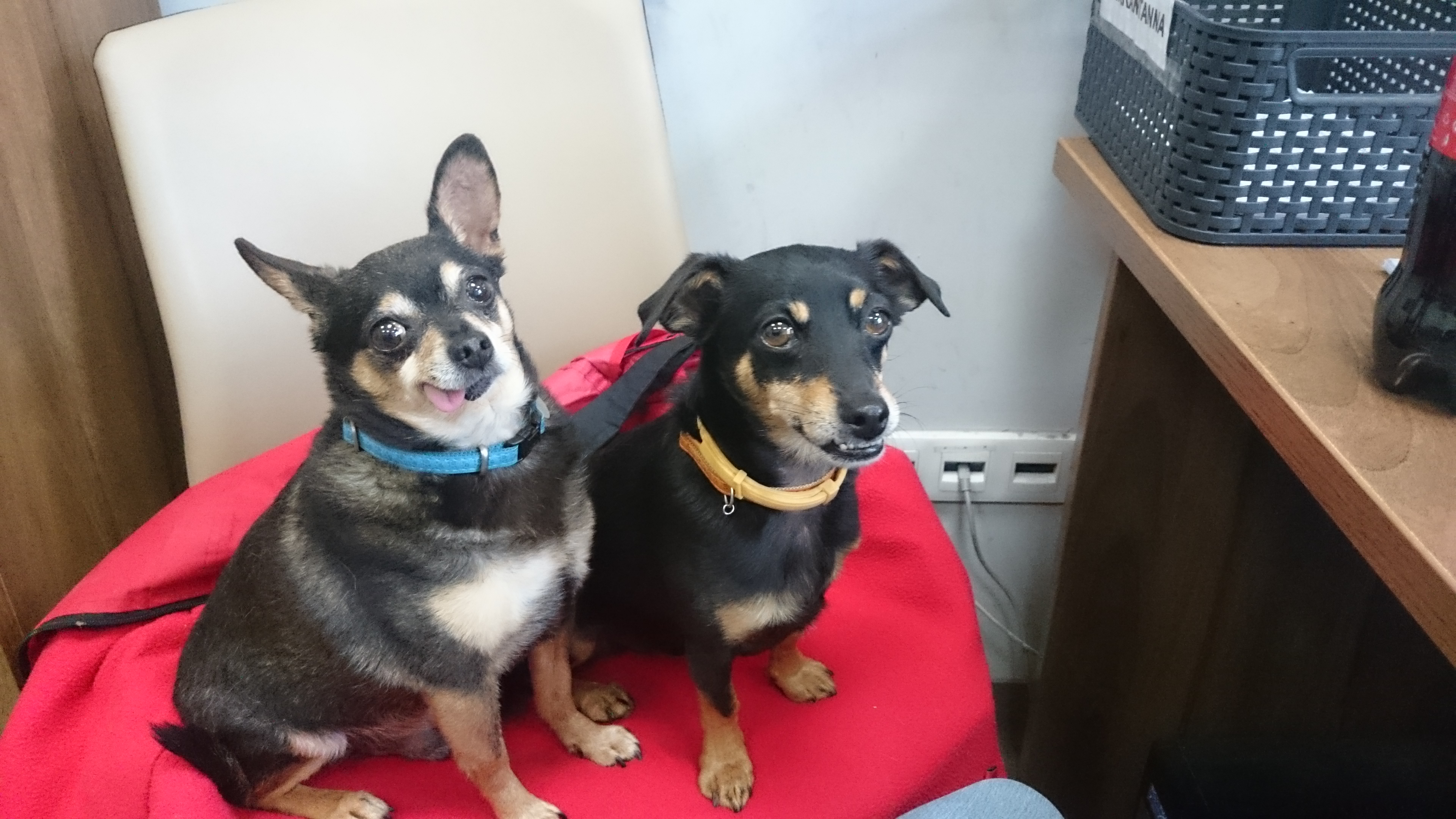 W ciągu dnia psiaki mieszkają w biurze, jako asystenci ;-) niestety po 8 godzinach kończy się ich praca i ze smutkiem i żalem w oczach zostają zamknięte w klatce...