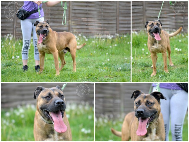 Budyń to duży, molosowaty pies. W stosunku do ludzi przyjazny i kontaktowy, nie przepada za psami. Spacer z Budyniem to prawdziwe wyzwanie bo chłopak jest bardzo silny i nie nauczony chodzenia na smyczy – jest psem bardzo pociągowym. Nie zwraca uwagi na człowieka powiewającego na drugim końcu smyczy i biega tam, gdzie akurat ma ochotę. Budyń potrzebuje ogłady a będzie wspaniałym towarzyszem.