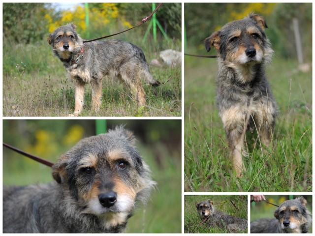 Gandalf w pierwszych dniach pobytu w schronisku był w takiej depresji, że nie podnosił się wcale z posłania. Teraz Gandalf już trochę ochłonął - wychodzi z boksu, merda ogonkiem na widok opiekunów, powoli zaczyna odczuwać przyjemność z kontaktów z ludźmi, dotyku, głaskania. Jest szorstkowłosym, bardzo przystojnym starszym panem o przepięknych, choć bardzo smutnych oczach.